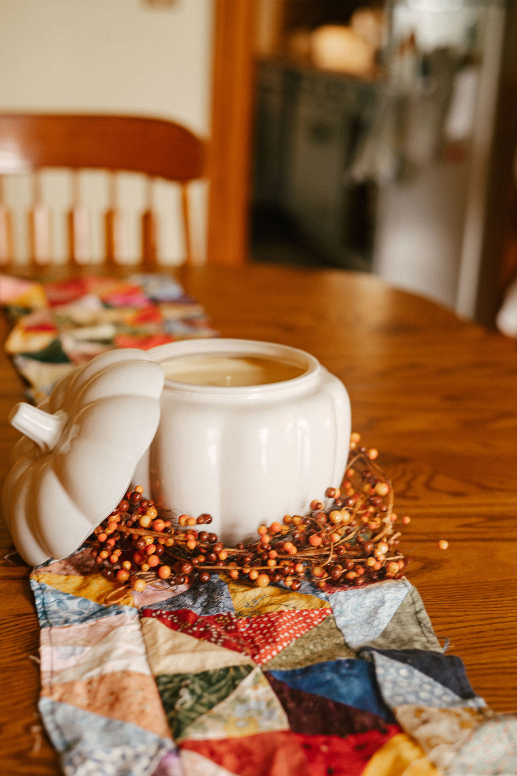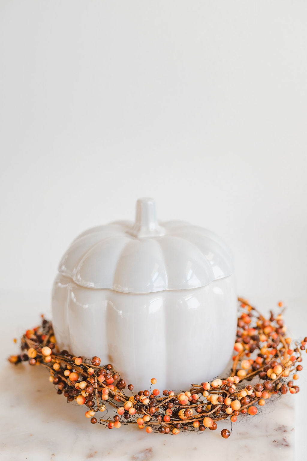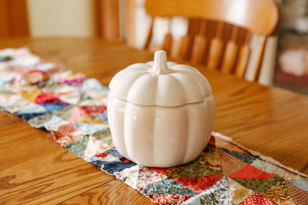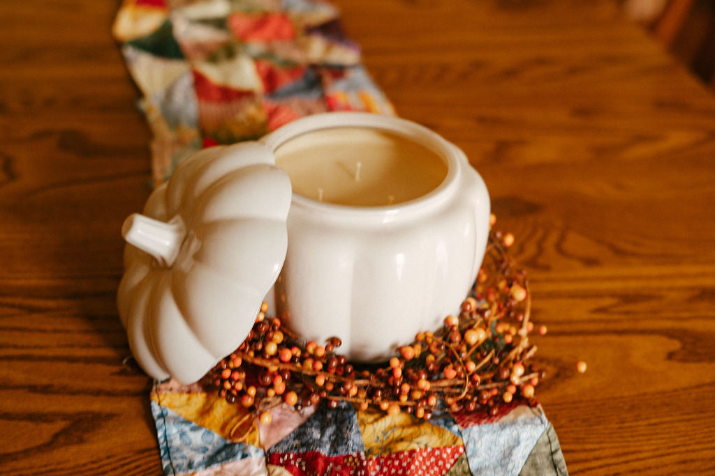 Perfect as a statement piece for your autumn décor, the ceramic vessel features a charming, harvest-inspired design that doubles as a reusable accent once the candle is gone. With an impressive burn time and rich fragrance throw, it's ideal for large living areas, entryways, or anywhere you want to create that cozy, fall feeling.