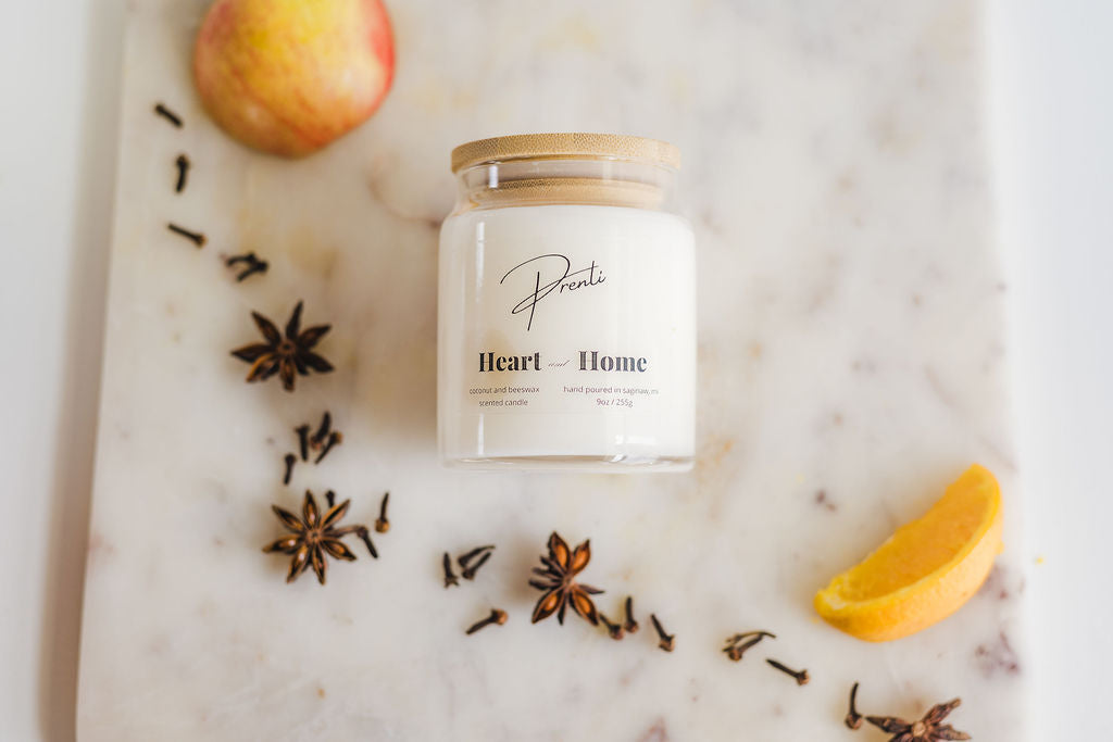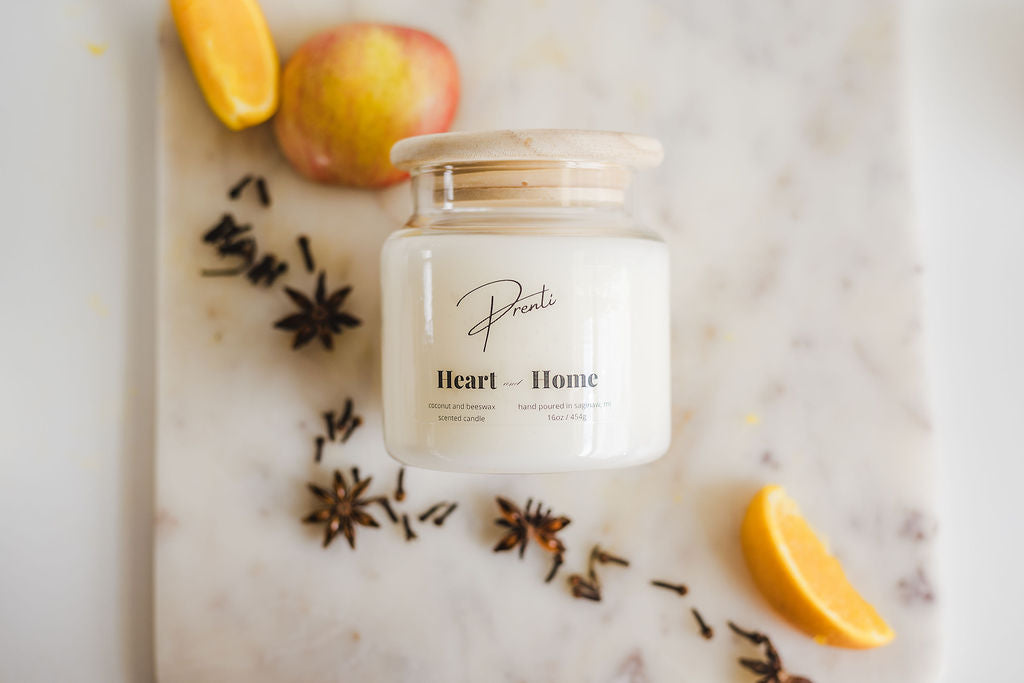 Wrap your space in the warmth of a fragrance that feels like coming home. The Heart and Home candle opens with a vibrant blend of crisp apple, ripe pear, and juicy orange—an instant uplift that awakens the senses. As the scent deepens, comforting spices of cinnamon, clove, and nutmeg add a touch of nostalgic charm, gently grounded by a soothing base of vanilla, soft musk, and golden amber.