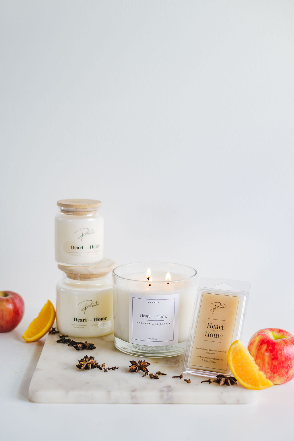 Create an inviting atmosphere any time of year with this beautifully balanced, comforting blend. Heart and Home captures the essence of freshly picked pears dusted in sweet sugar crystals, with a twist of lemon zest and crisp apple to brighten the mood. A heart of steeped Earl Grey tea, golden acacia honey, and warm nutmeg wraps your space in cozy sophistication, while a smooth base of cinnamon sticks, creamy vanilla, and glazed syrup lingers gently in the air.