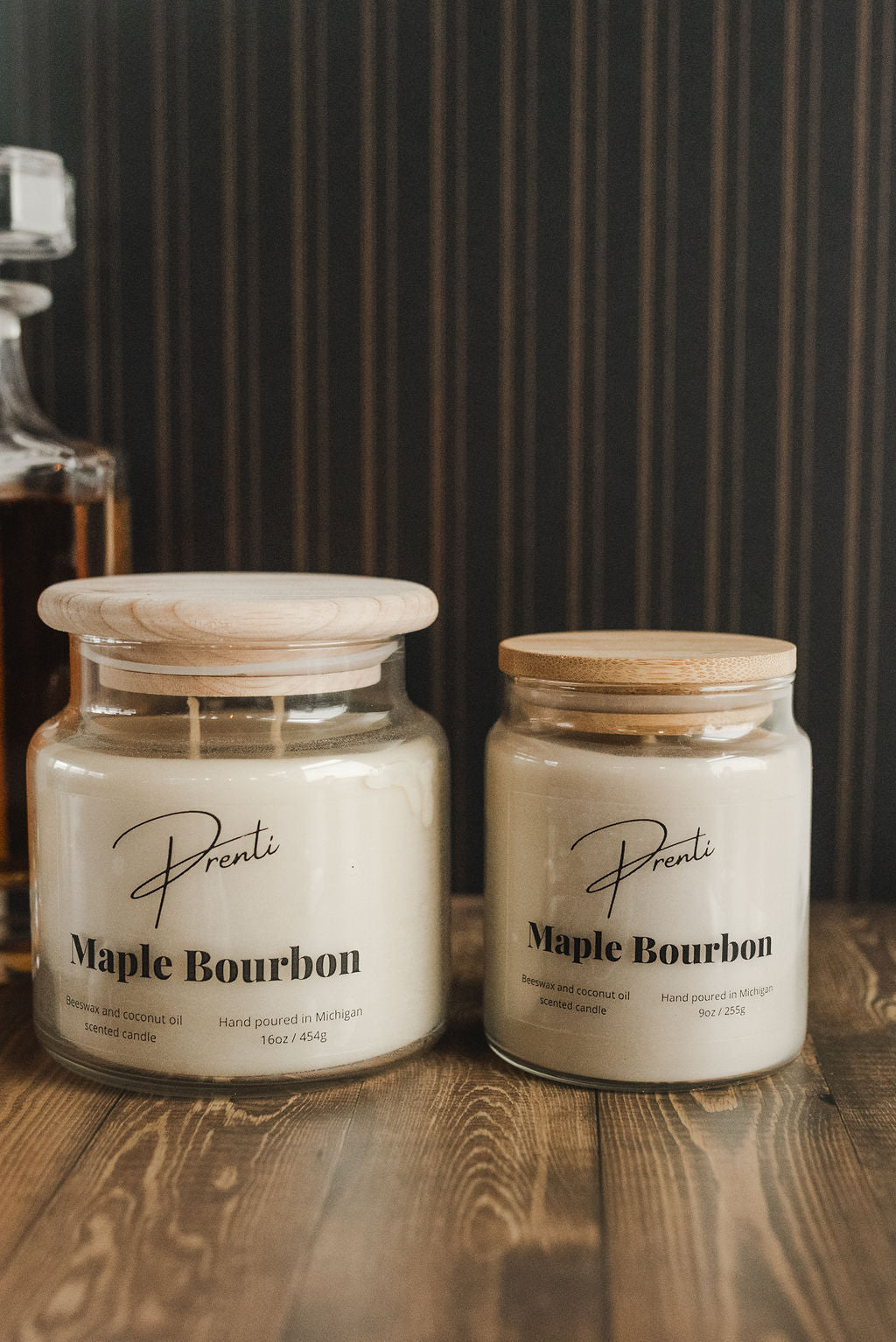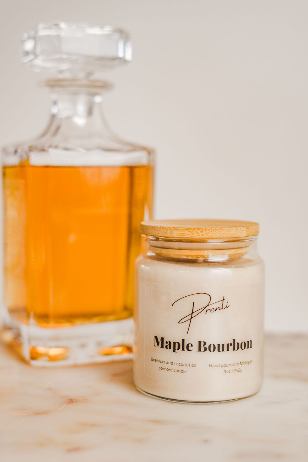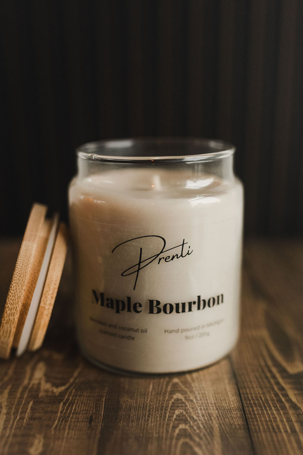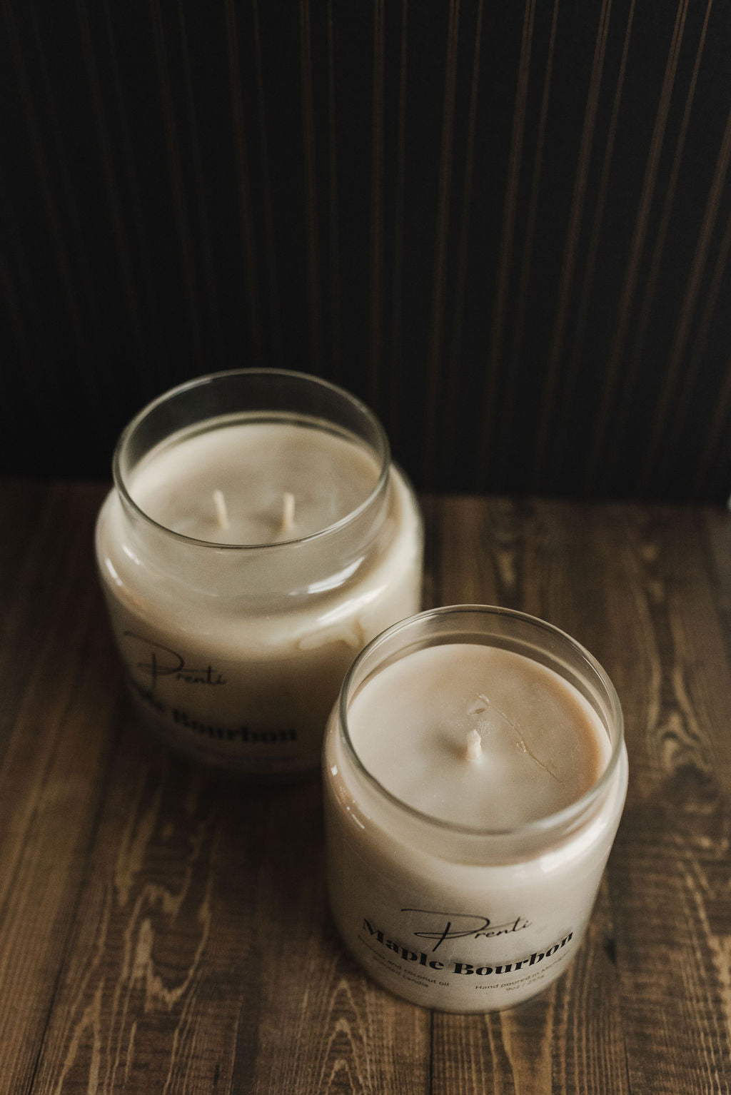 Our Maple Bourbon candle combines the rich, warm aroma of smooth bourbon with the sweet comforting scent of maple syrup. It evokes cozy nights by the fire with hints of vanilla and a touch of cedar. Perfect for creating a warm, inviting atmosphere combining the rustic charm and indulgent sweetness.