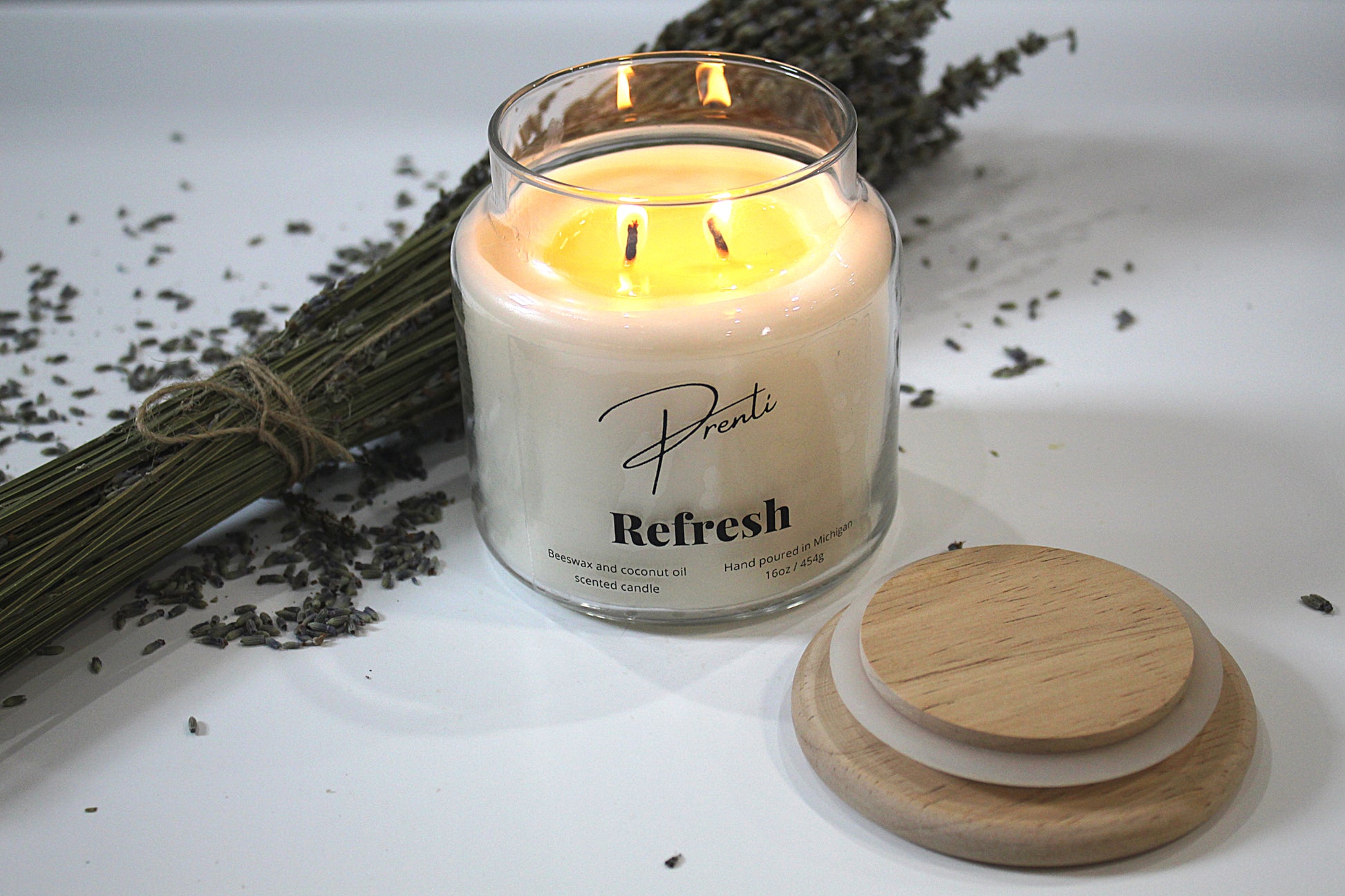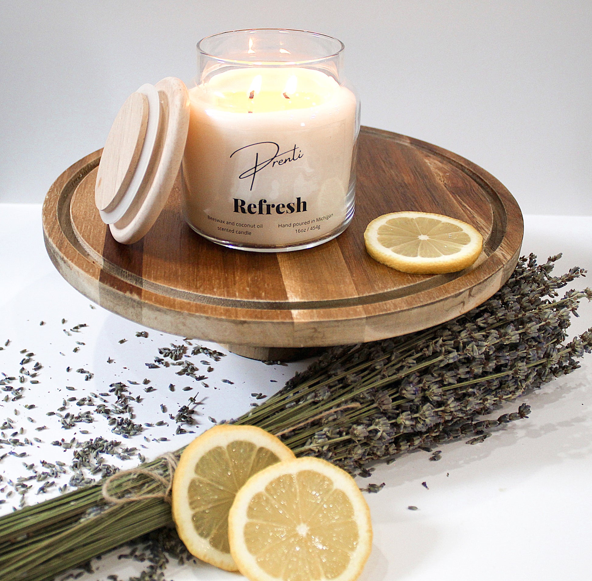 Refresh is a perfect blend of zesty lemon, bright citrus and vibrant French lavender mixed with sweet vanilla and soothing musk. Clean and refreshing. The uplifting scent of lemon energizes the senses, while the calming essence of lavender creates a tranquil, serene ambiance. Filling your space with a clean, peaceful fragrance.
